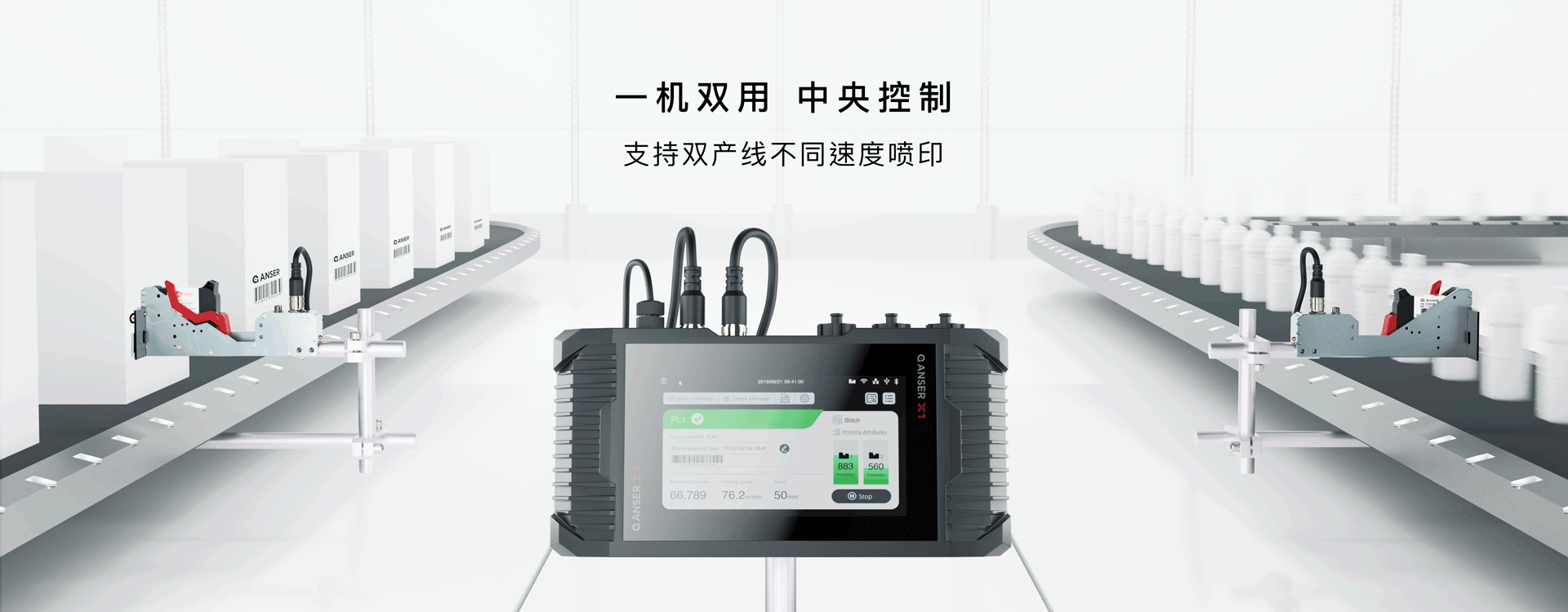 雙噴頭可噴印50厘米字高,大幅降低安裝空間及設(shè)備采購(gòu)成本,兩寸大幅面噴印更可取代外